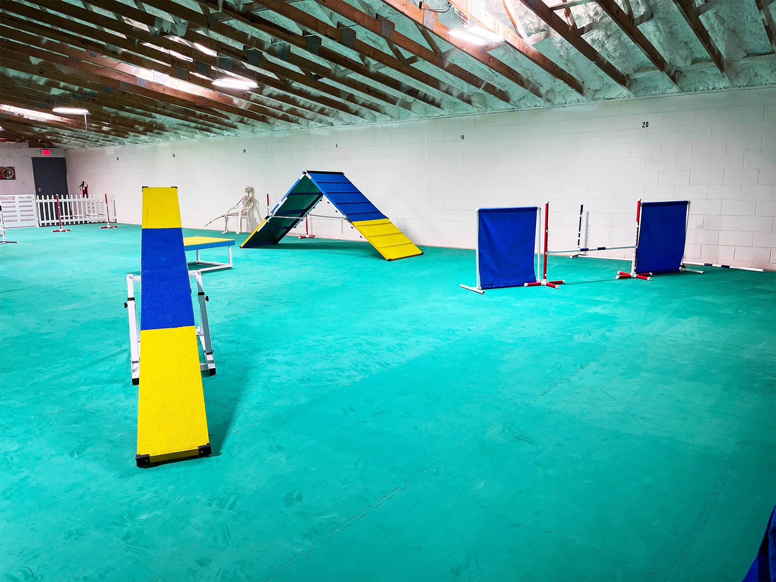 Seasonal weather can be a real challenge for some to get out of the house and exercise their dogs. An agility class in a climate-controlled space can help with that.